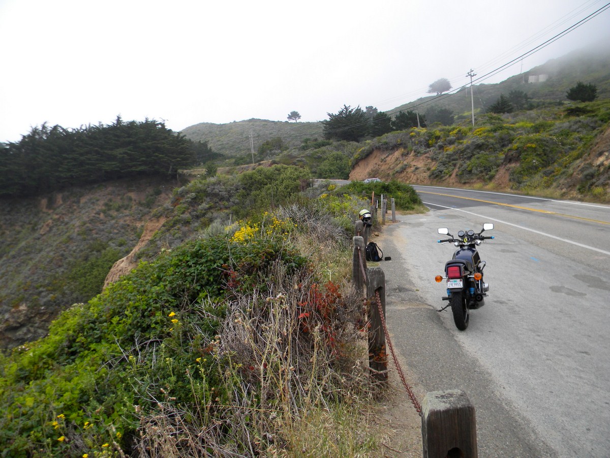Bummer ...all fog...80 at my house and full sun...15 minutes away and boom...Mark Twain spoke of july in cali being his coldest winter... and fogged in on Highway 1 ...rode about 30 minutes down to the real stuff and then got too packed with cars and weekend traffic and on the third u-turning car traffic snarl i spun around and rode back into the sun and got the bike out of holiday traffic..i wanted to ride farther and i just know the sun was burning hot and summer farther down and in the redwoods....too many cars though....