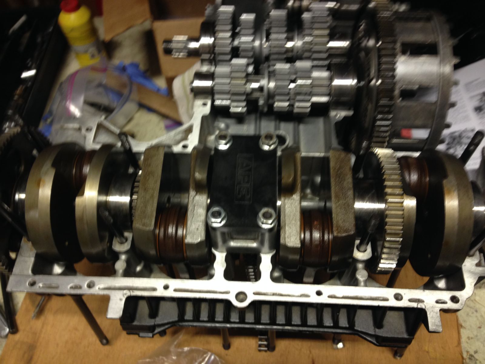 I finally started on the engine build which i have been procrastinating on. While i was back there I had the main bearing cap machined down for this APE support plate while I was at it. I have a sneaky suspicion i will want to do something crazy with the top end in a couple years.