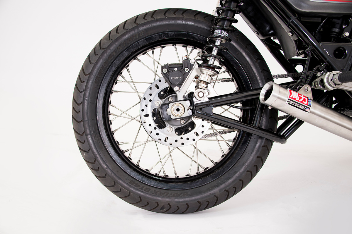custom rear brake setup with grimeca caliper and brembo MC