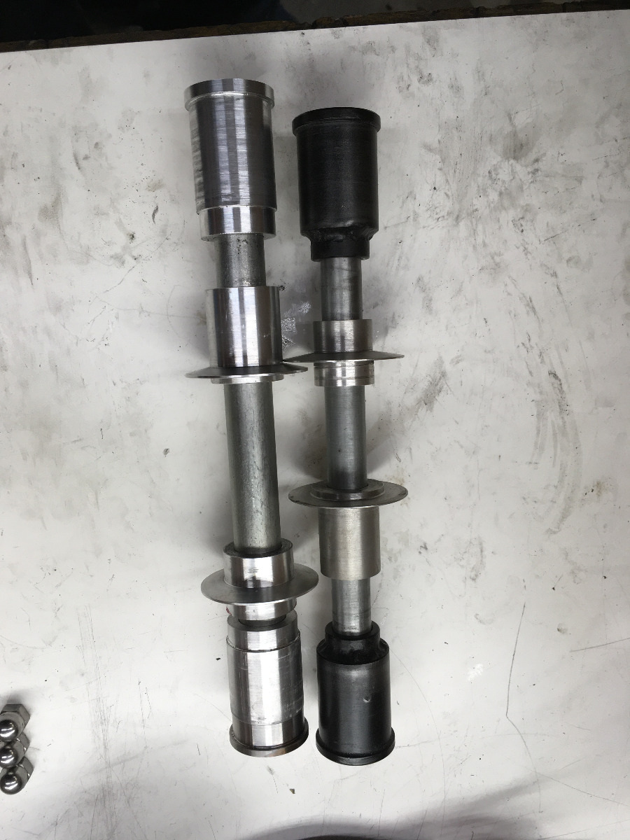 I fabricated a new front axle, increasing diameter from 17 to 20mm. I remade the spacers, and nut with aircraft grade 7075 aluminum, The other end has a 316 stainless nut i machined and welded to a hollow GSXR axle. including bearings the assembly weighs 8oz. less than previous. Making this axle is something I wanted to do for a while. I'm not a pro machinist so this took me 30+ hours of machine time with a couple screw-ups along the way. However it forced me to get better indicating parts using a 4-jaw chuck on the lathe. I love stuff like this.