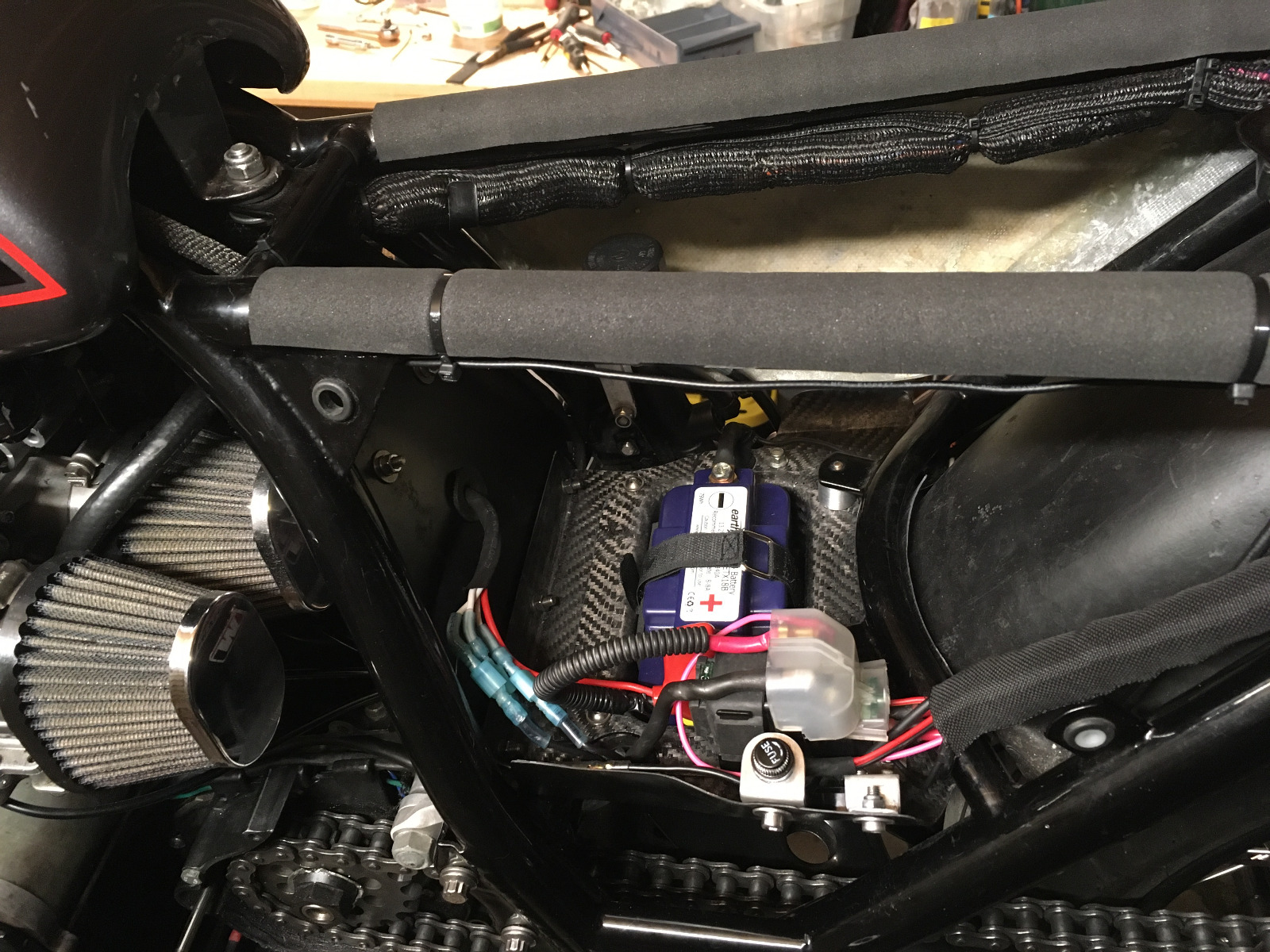 I melted my regulator and got a new one from Ricks Electronics that is specifically for lithium batteries. I also relocated it from in the tail to behind the carbs to get more airflow.