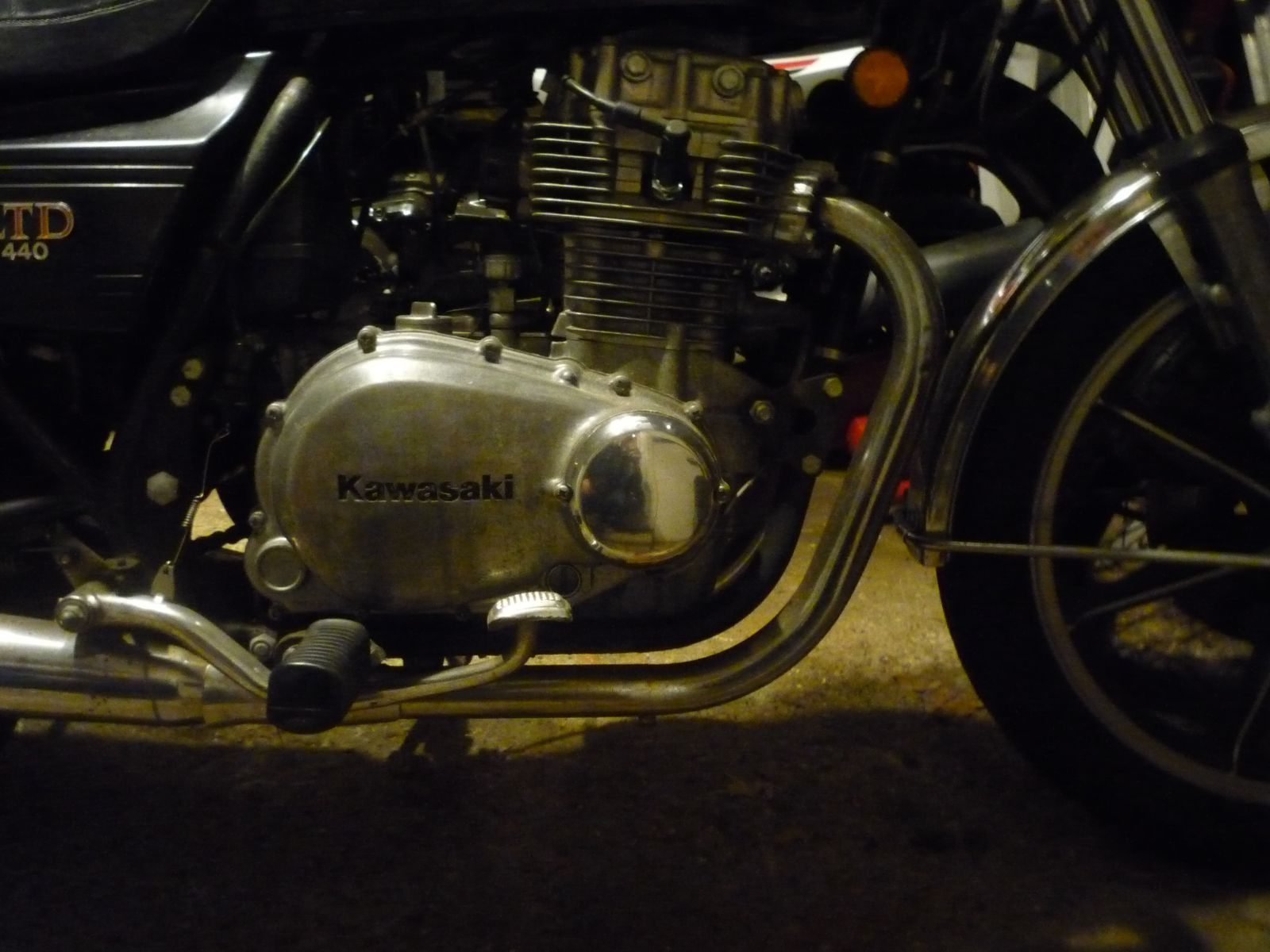 1978 KZ650 C2, 130K kms, Delkevic ex, EI, CVK32, PMC easy clutch, ATK fork brace, steering damper, braced swingarm, ZRX shocks, 18" Z1R front wheel.