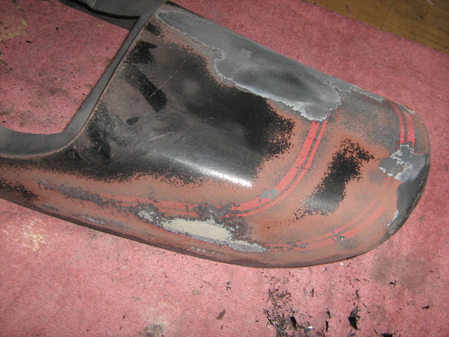Started blasting the rear cover. Nice to see the old and original stripes under all those layers of paint.