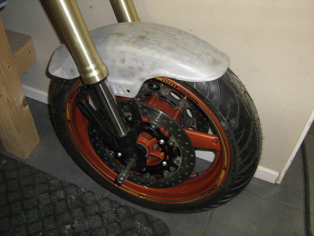 Are you using factory forks? I thought they were a modern USD - hows that gonna work? Why not go with the fender made for the forks?