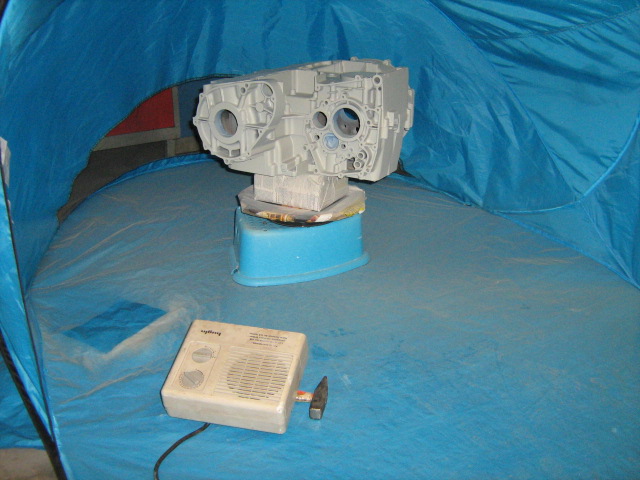 Got the case painted today. As a Swede I have to promote IKEA that sell this perfect little spray booth. Mounted the engine on a turn plate and off I went..