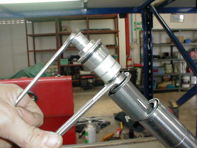 Any one know how to get the "blue" spring loaders off ? Do you have to open the fork ?