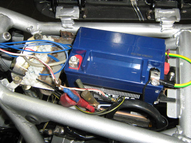 I did a but ugly job hooking the coils and battery up. Filled up with some petrol and up she started.