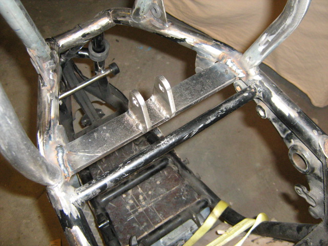 another easy mod would have been to use the shock length adjuster you can find in any ZX6R so that you can adjust ride height. see pic