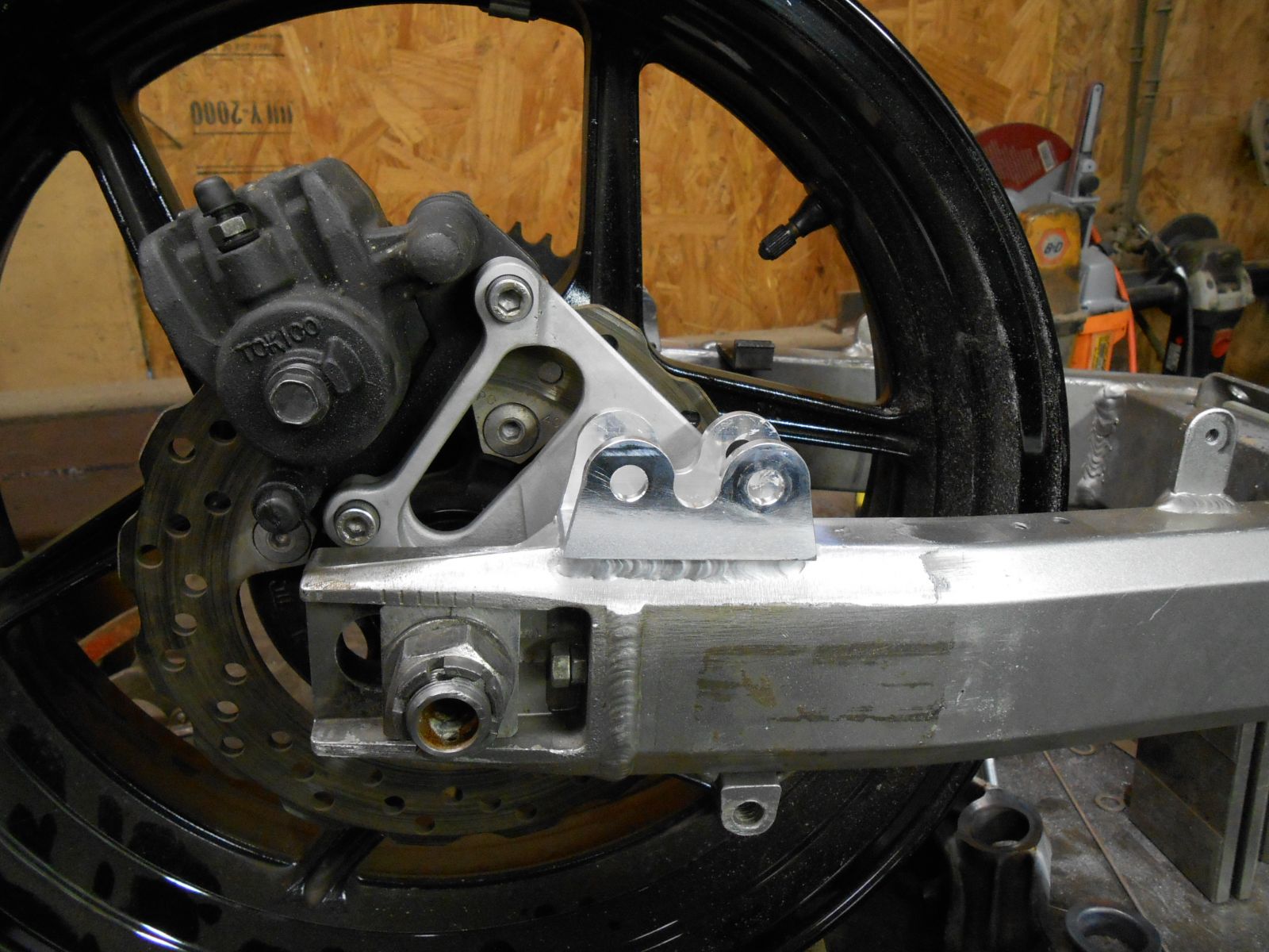 While I had the engine off the frame I would paint it and replace some of the bolts and nuts with SS. Leon worked his majic on the swing arm and front tree and also made a custom rear brake bracket and spacer that looks OEM. Great job Leon. This build has been fun so far. I have meet some nice folks that know their stuff about these bikes. Thank you and keep up the good work. I'm sure I have more questions that need answers too. :ohmy: