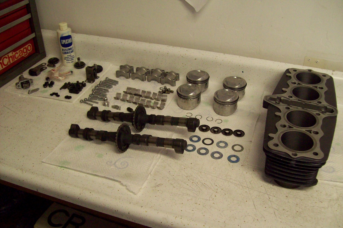 Got my butt in gear today!!! Getting ready for top end assembly. All the little parts have been washed in Safety Kleen, inspected, and ready for assemble. Waiting for OOPS (UPS) to drop off my cylinder head today. Then I can to start to put that together finally!!!