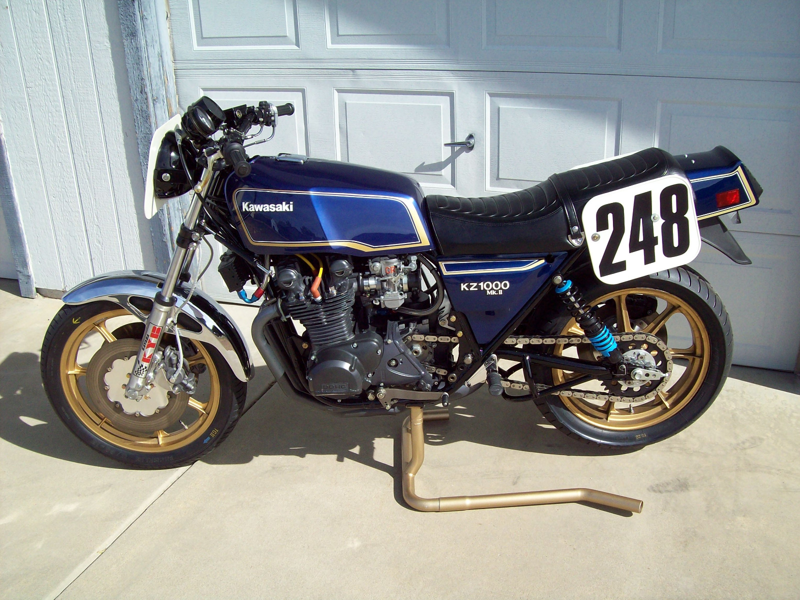 If anybody wants to know exactly what makes up or what has been done to my KZ1000 MK. II Superbike, here is a short list. I restored this as close as I could to the very last time I raced it. This bike has 5 seasons of racing on it in its past. Its now back to its original 1979 factory blue paint job too!!!