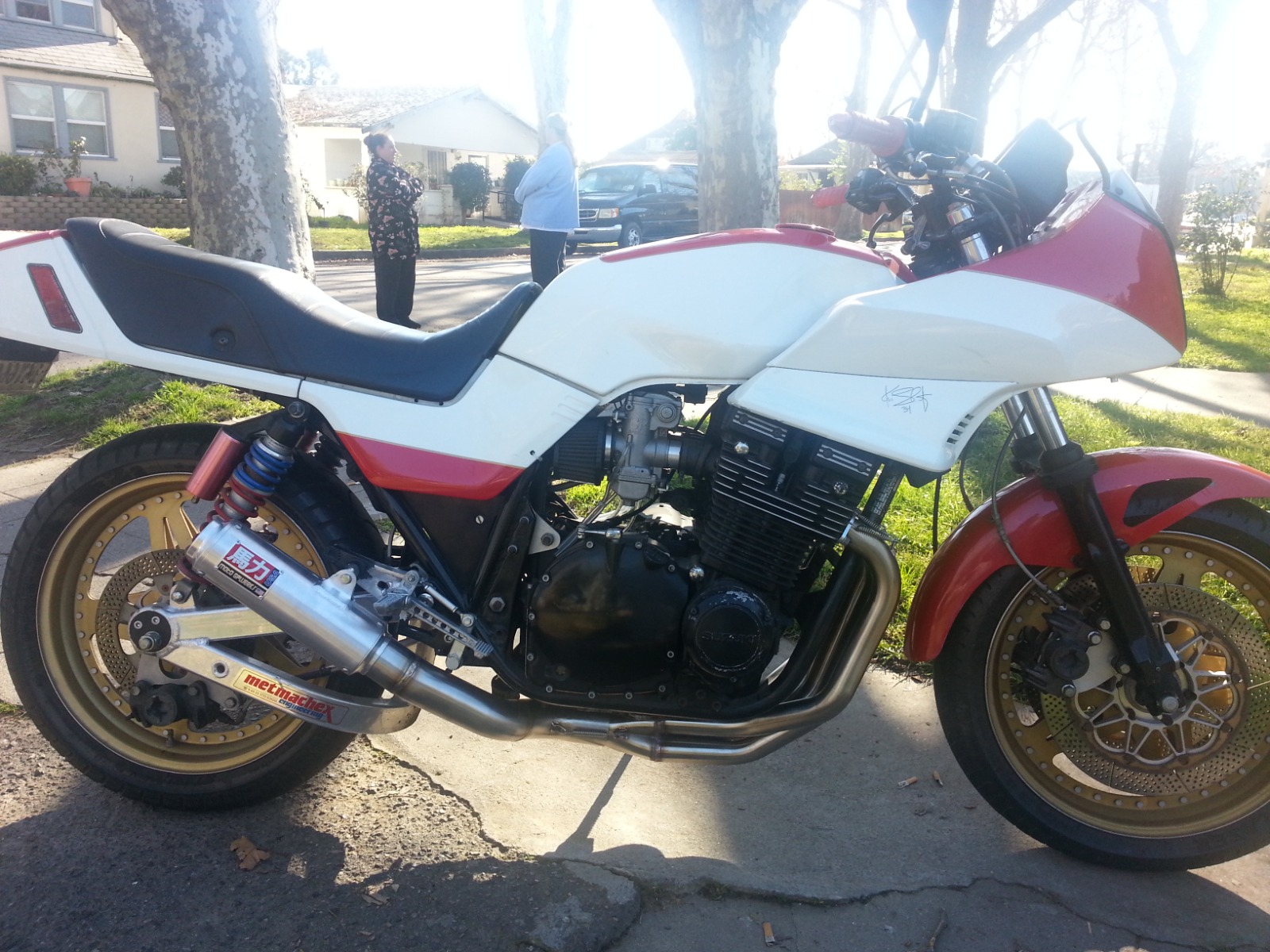 Wife's BIG bike......[strike] 1981 GPZ 1100 Kerker and [strike]factory FI[/strike] Mikuni RS34s W/ K&N pods[/strike] SOLD