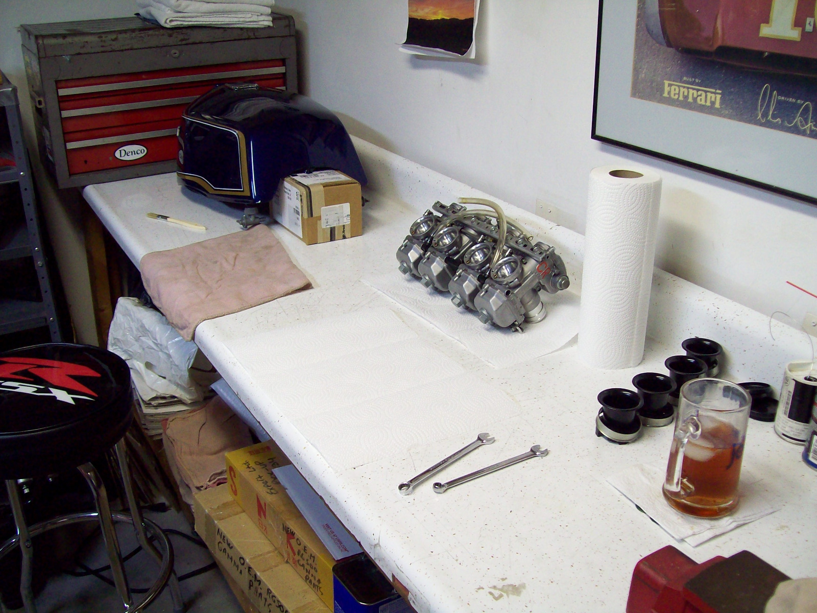 Been working on my two bikes I want to bring to the VJMC bike show. The Kz1000 MK.II Superbike and the Rg500 Gamma. Just in case someone wants to hear one of them run, I went through the valves and the carbs on the MK.II. I fired the MK.II up on some four year old VP110 I had sitting around. Well that was a BIG mistake. The bike ran great last year on that very same gas. Guess three years is the life expectancy of VP110 not four years. Bike just didn't sound right on that old fuel. Drain all the sh*t gas and clean the carbs!!!! VP110 is up to twenty bucks a gallon out here!!!!! Now with fresh fuel the MK.II sounds like it used to!!!!!!