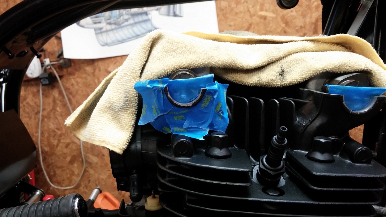 This is how it sits now. The exhaust is temporary. The Kerker racing pipe will be going back on....just wanted to test fire the engine and warm it up to change the oil. The Kerker blocks oil filter access and I didn't want to blue the pipes if the carb settings were way off.