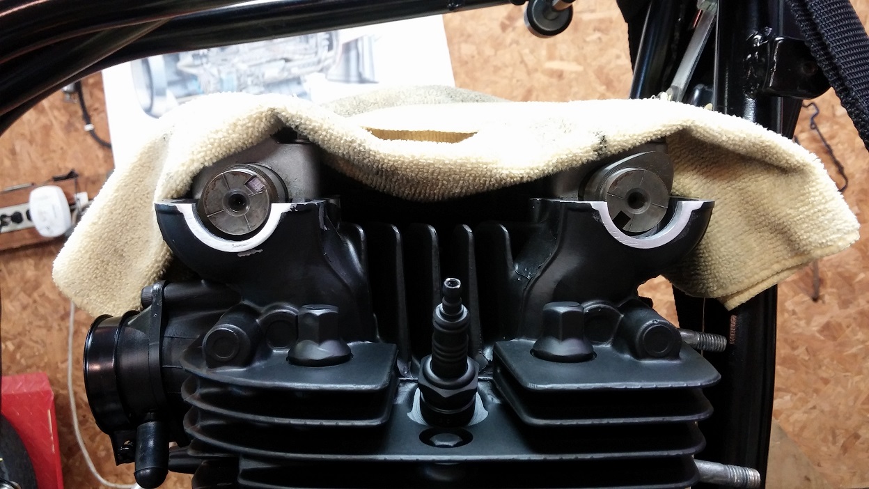 Ran into a little trouble with the new aluminum cam end plugs. The casting was thicker on one side and the plugs wouldn't fit. I got some advice here on the forum and filed the outside of the head near the plugs. worked beautifully: