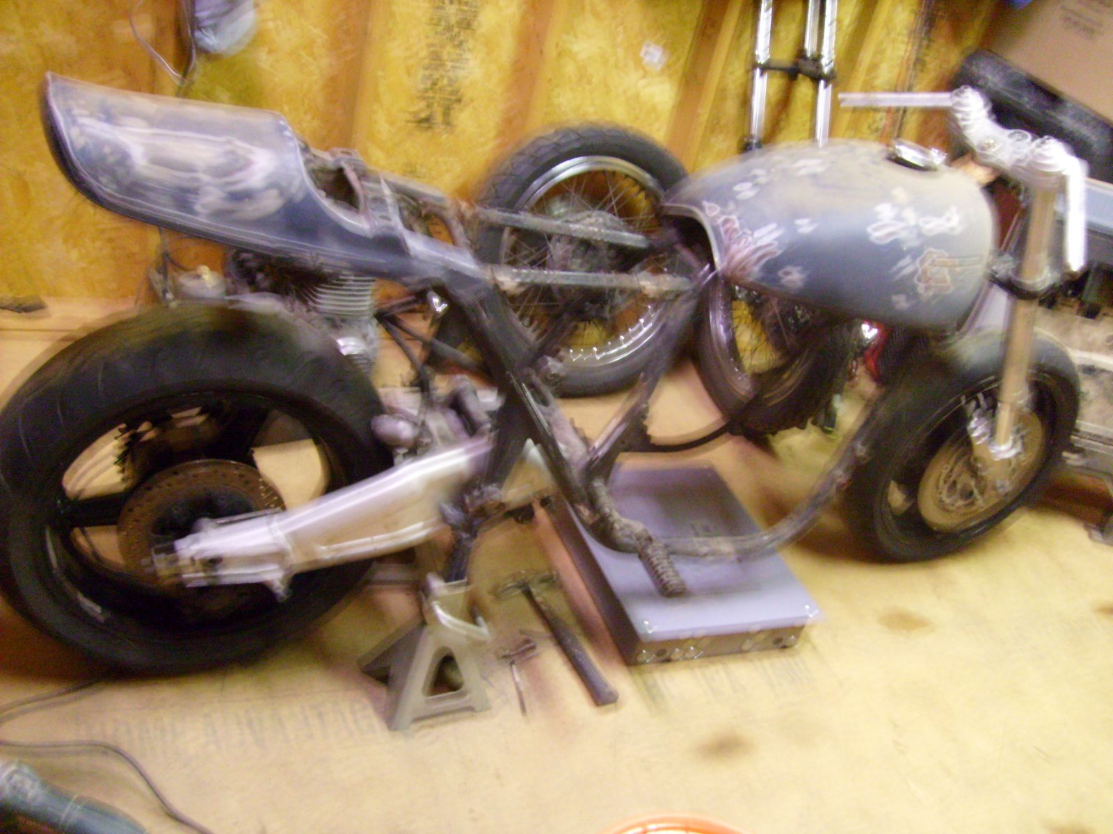 pic of bike with rear installed and front end....waiting on the bearings