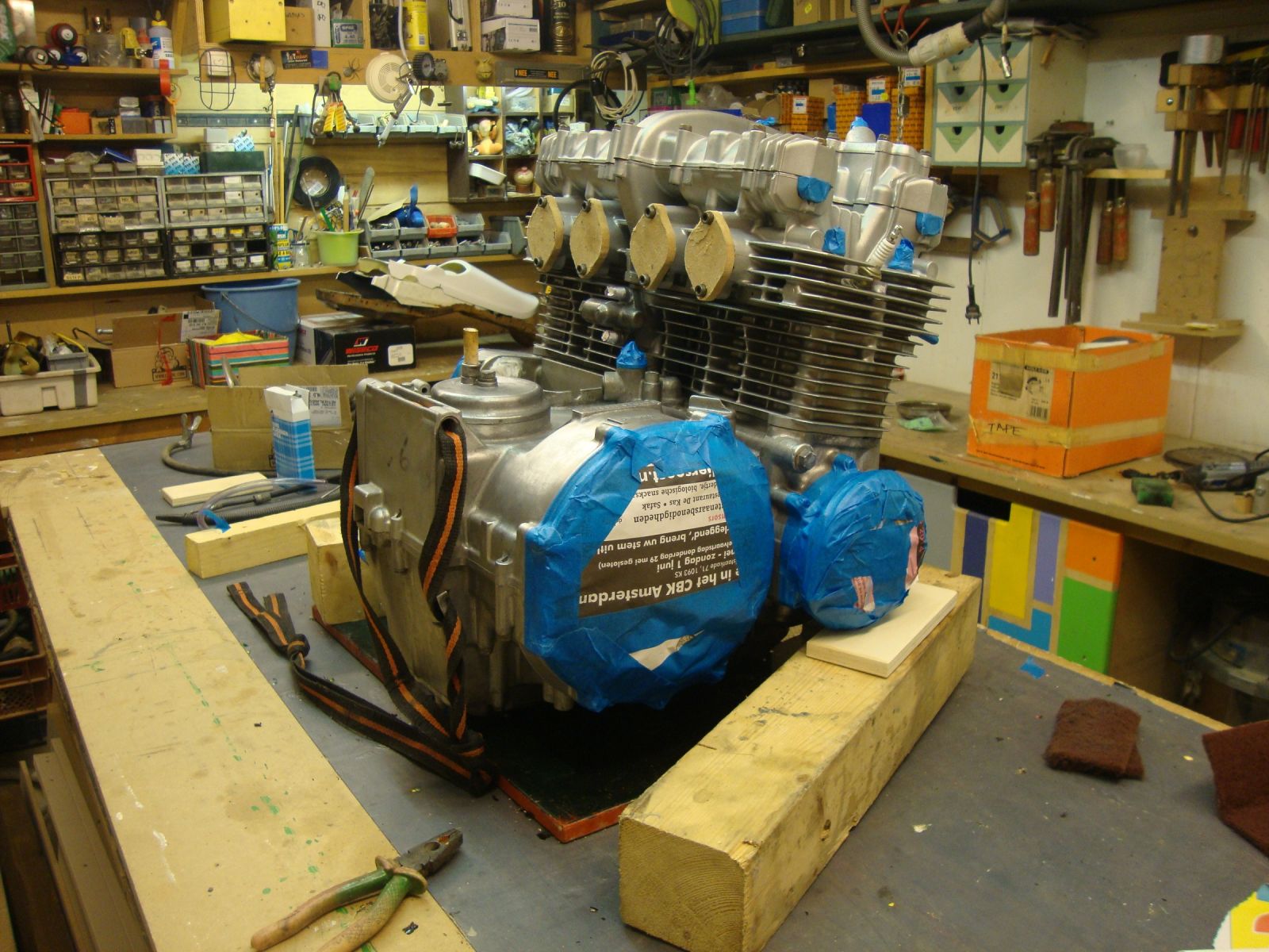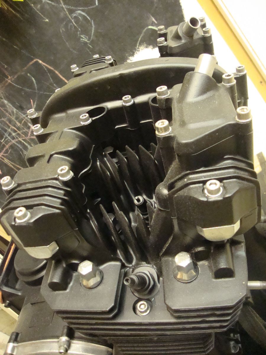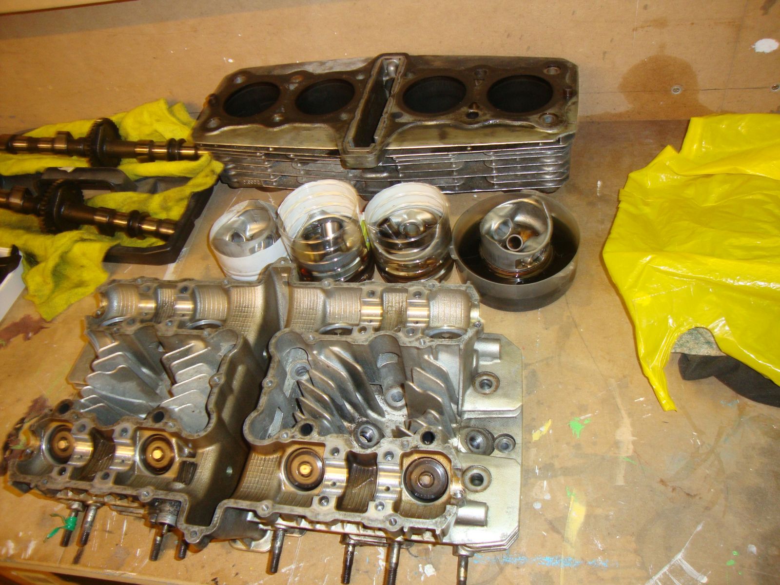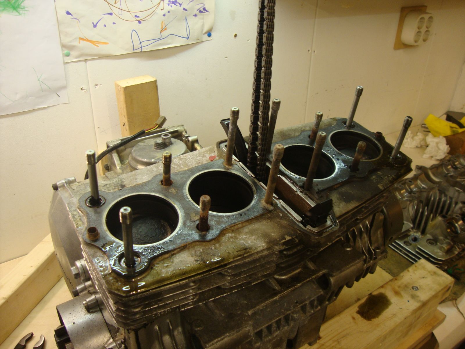Like I mentioned,the bike was firing out a lot of blue smoke when I got it running. One of the tail pipes was very oily.(from cylinders 1 and 2) I pulled the plugs out and did a compression test but it was inconclusive. ( 3 tests,3 different results,both with and without oil).So, time to get the motor out,open it up and see whats what.