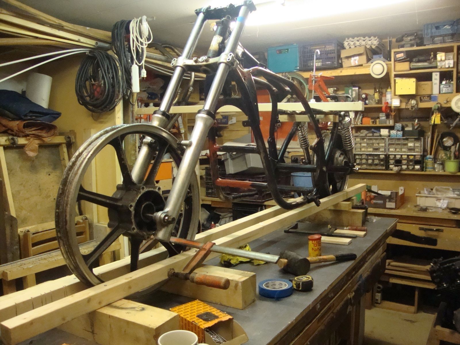 Heres how it stands at the moment. Original forks ,swingarm and wheels.