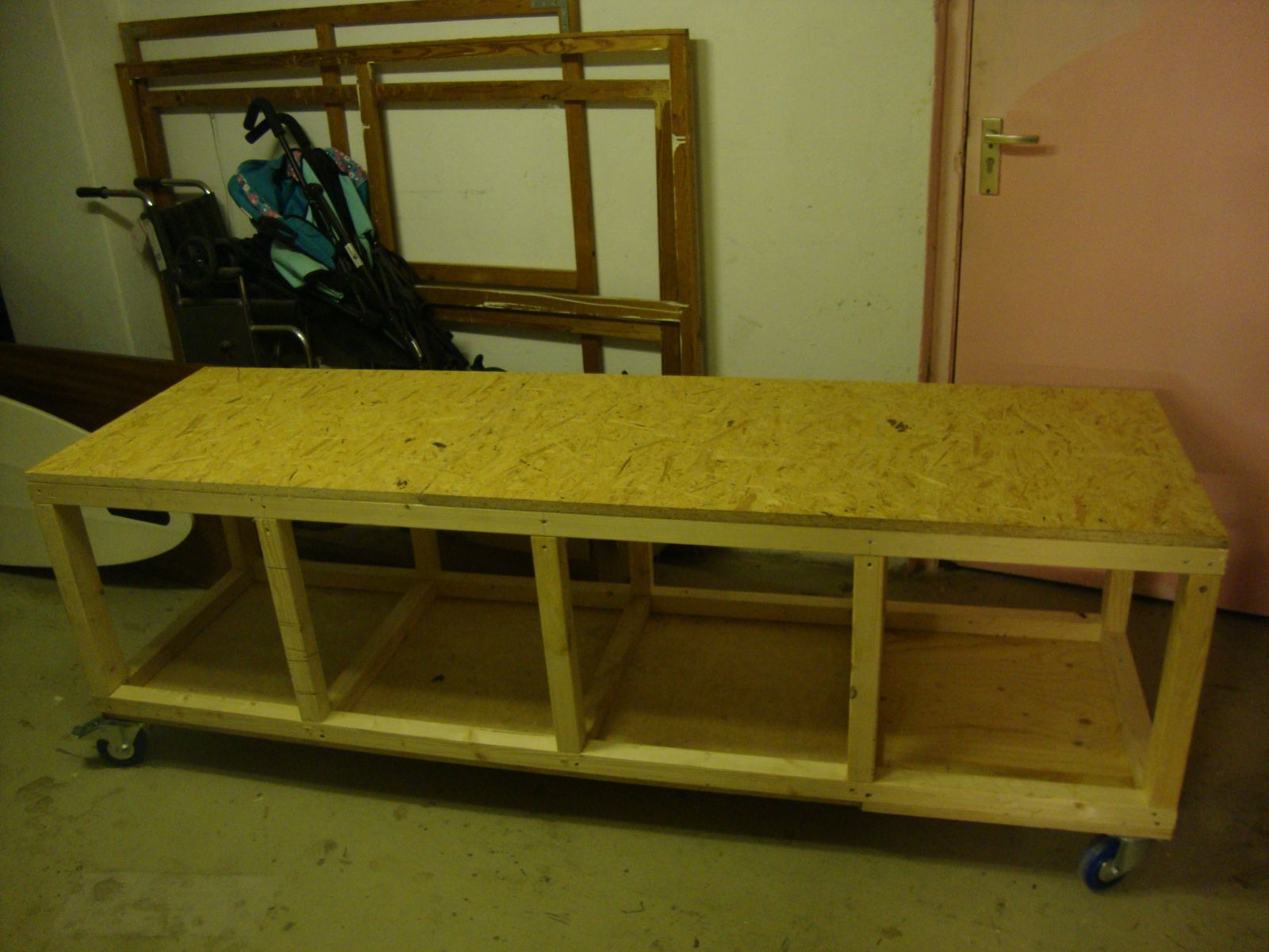 I dont have the room in my workplace to be able to stand back and look at everything, Plus I need the workplace for 'work', so Ive built a table to put the bike on that I can roll out into the corridor.