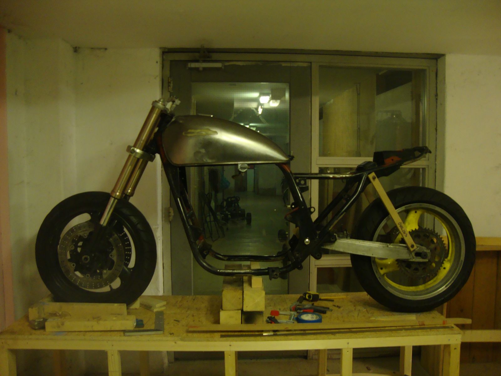Things are still at a standstill.Ive been busy with work lately and had no time for the bike. I have done a bit more research into 17x160 back wheels and the YZF600r Thundercat or FZS600 Fazer are looking good. Before I go any further though,I want to pull the wheel out of my 600 Bandit and try that,Its only a 17x150 but it should give me an idea if Im going in the right direction.