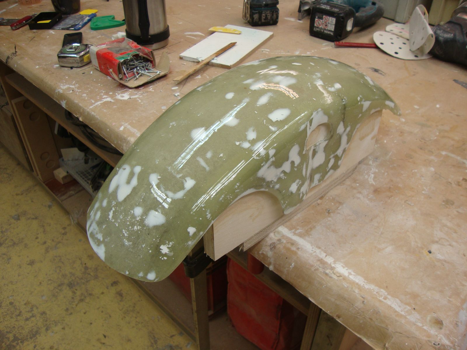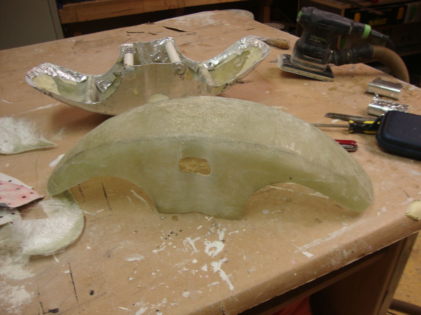 And with all this sanding Ive noticed that its gottena bit thin in places so Ill do another layer of fiberglass on the inside to beef it up a bit. Also maybe a bit extra around the mounting holes.( i initially did 3 layers of fiberglass,I should have gone for 4 or 5 I think)