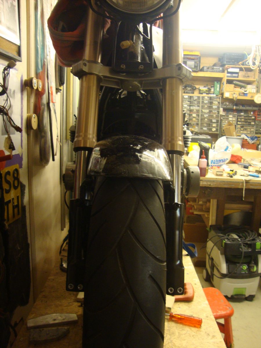 Well,its getting there. I brought the mudguard home today and plonked it on the bike..It still needs sanded but Im happy with it.