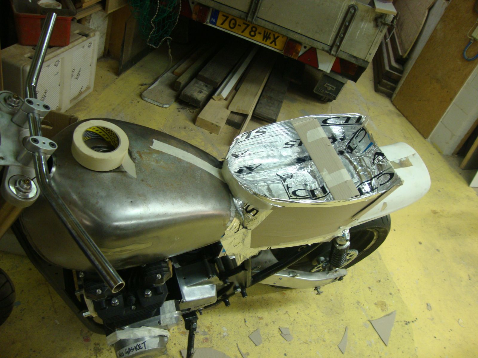 On the good side,its a very solid foam,more so than the average bike seat stuff and the underside is perfectly shaped to the seat pan and tank rear,which was what I was after.I havent even thought much about the final shape of the seat yet.Ill have to think about that and I need to invest in an electric carving knife,as a normal bread knife wont cut it (literally!)