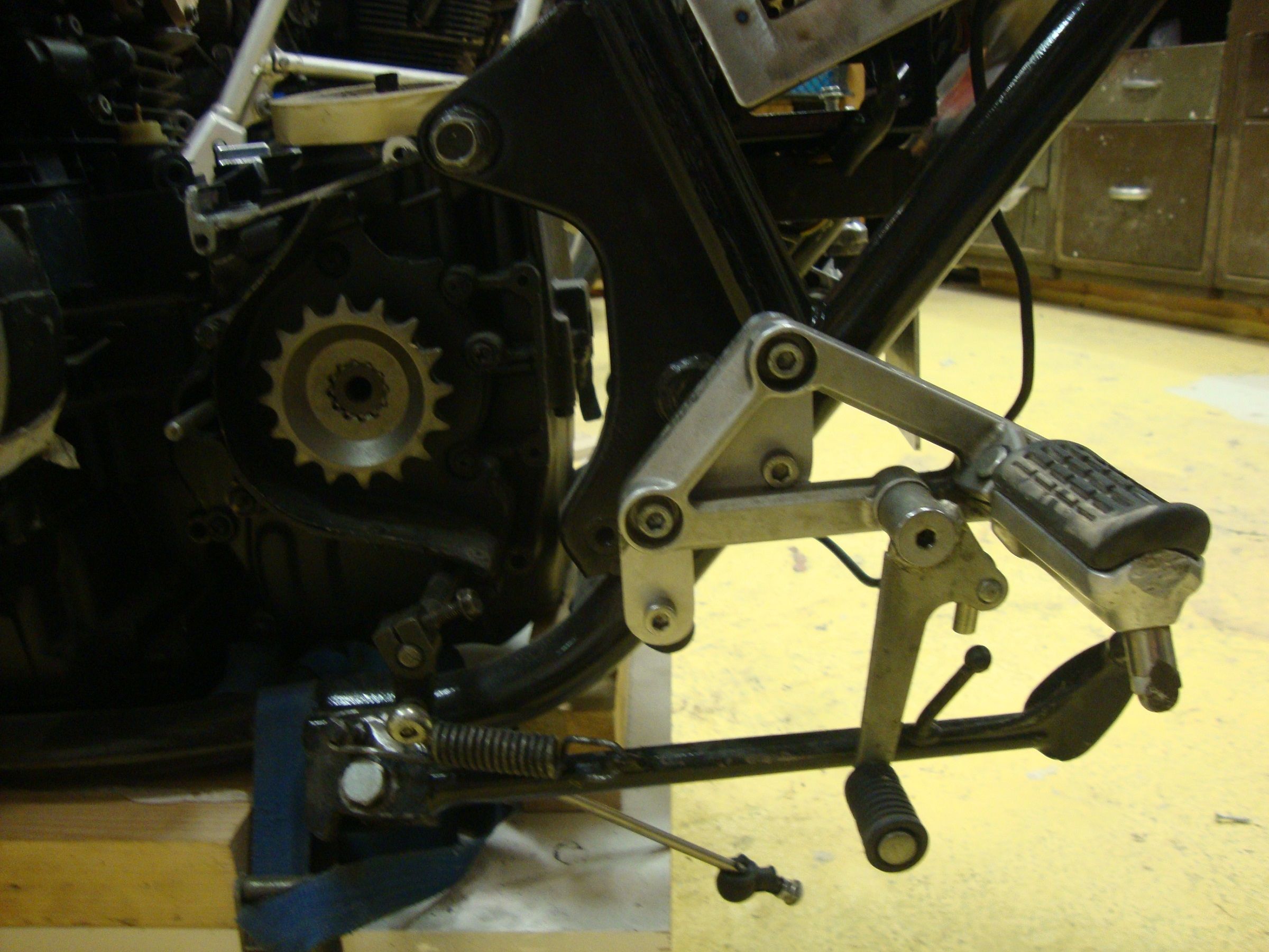 Today, it was 'Alu day'. The rearsets have been a major problem for me on this build.Mainly clearance problems with the brake pedal and the pipe on one side and on the other side, twixt the gearchange lever and the side stand Its been a real pain in the arse,to be honest. I think I got it sorted now though. I hope.