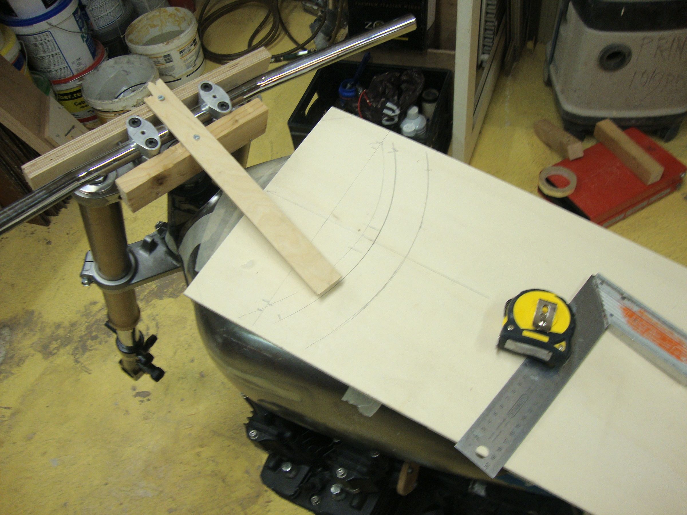 Once Ive gotten that done,Ill transfer to a final template from 18mm MDF, bolt it up to some 10mm alu plate,trim it back on the band saw and run it over the router table.