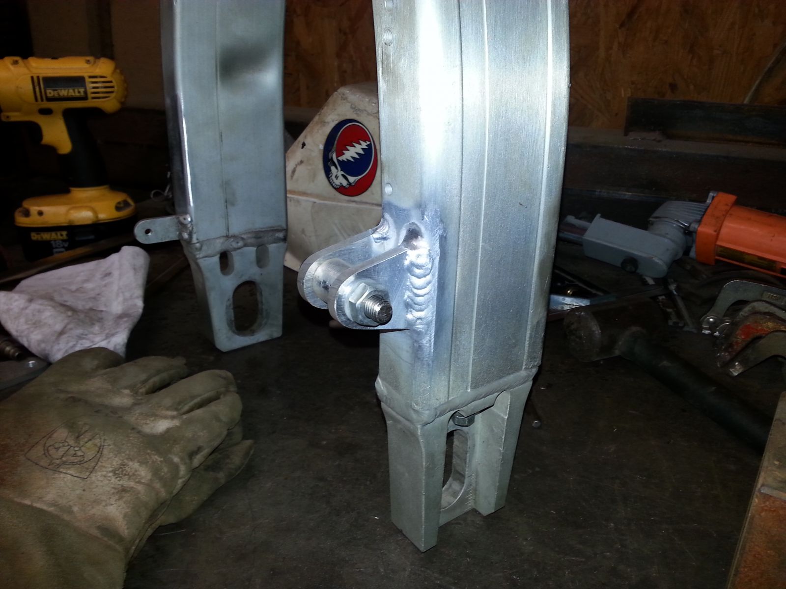 On a different subject,I remember some mention of alu brackets that you weld on to the (monoshock)swingarm to keep the twin shock set up.