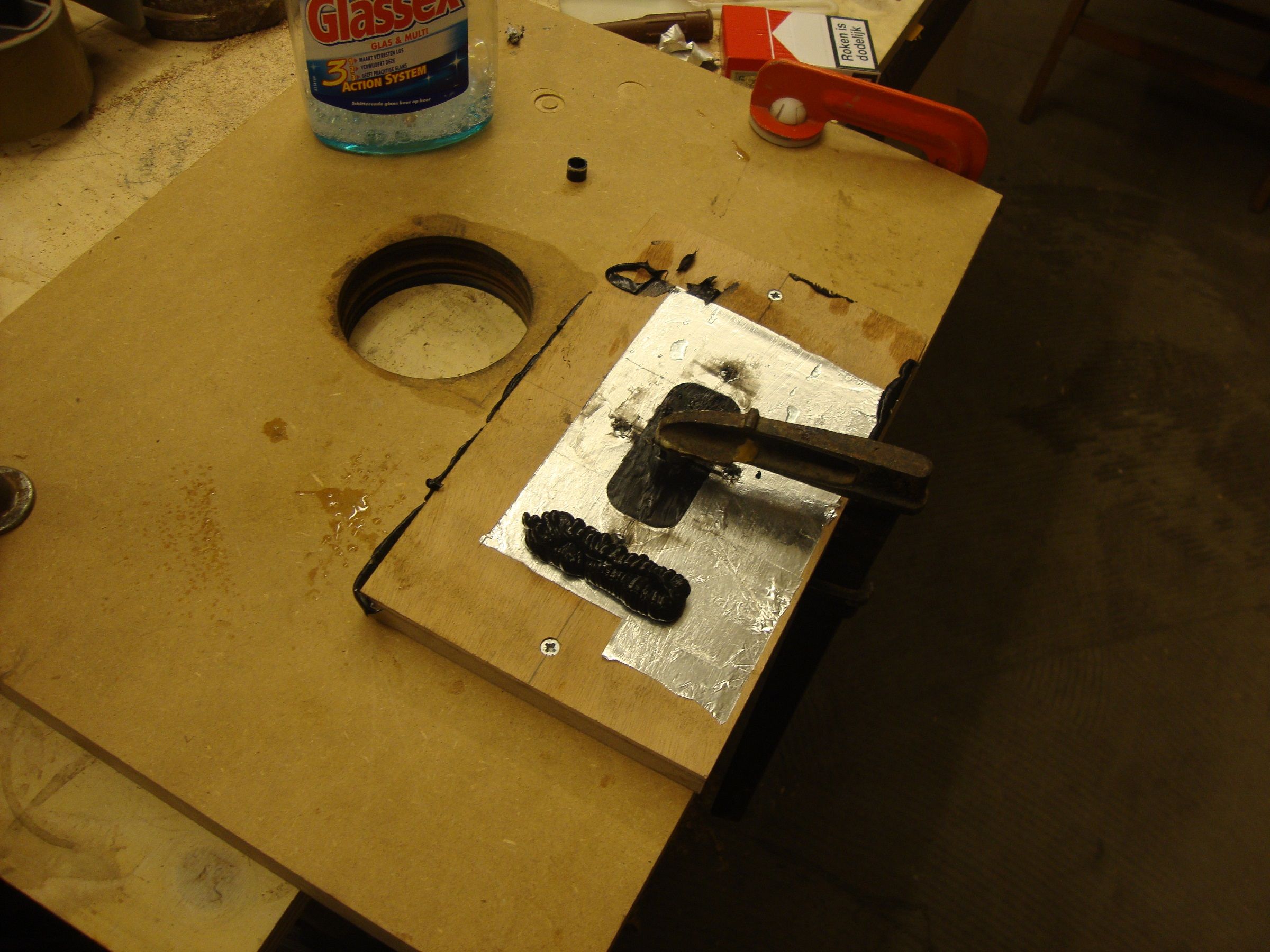A homemade grommit.Not very beautiful but it wont be seen and it should work well. Its just from bathroom silicone so its a bit floppy.If I was to do it again I would try Polymax or something like that.Something a bit more rigid.
