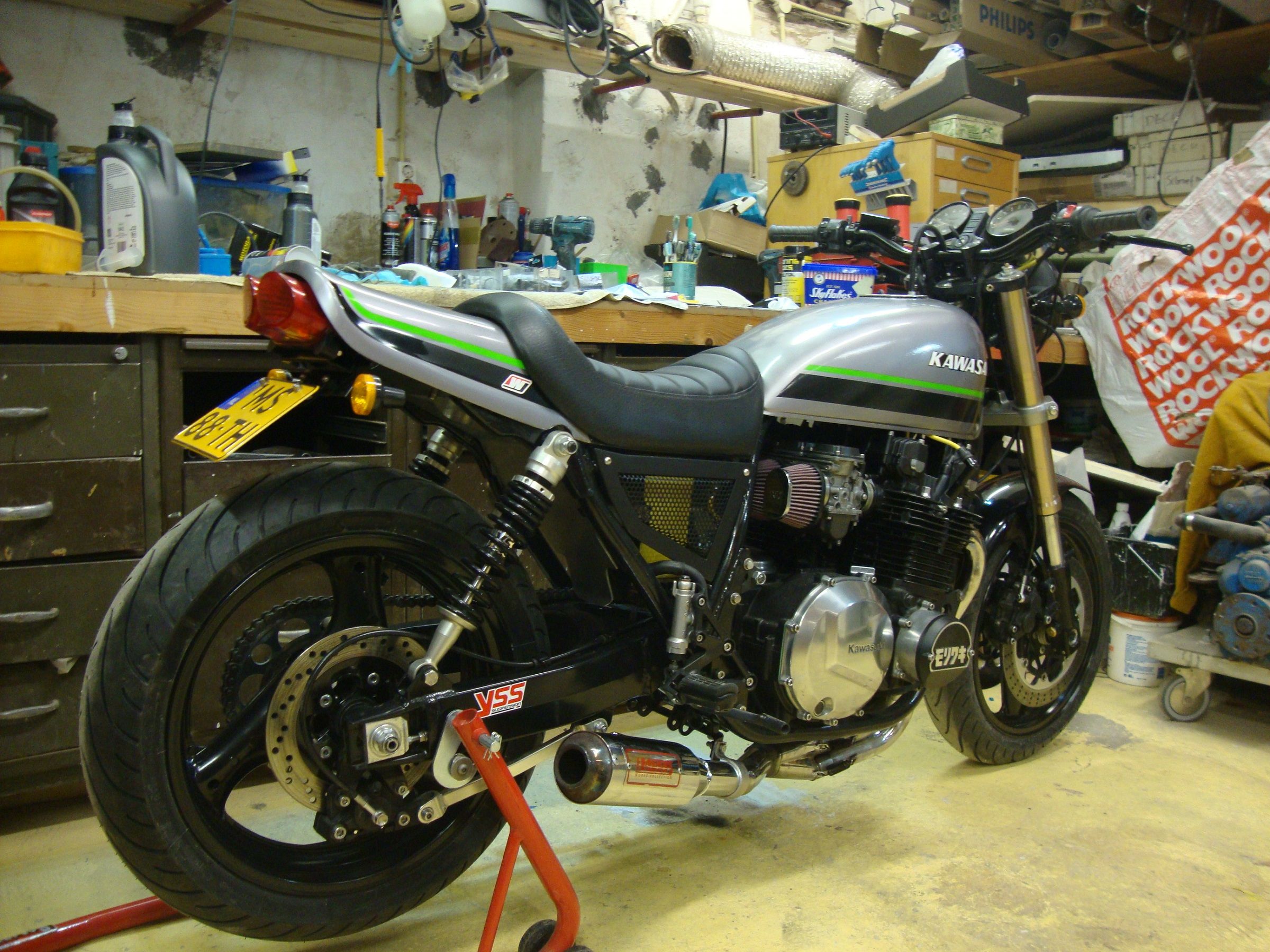 So,thats that. Theres still work to do.The clutch and the swingarm but the main thing is to tune the carbs and get it running. Thatll be happening....eventually. For now,Im done. Ive started clearing out the workshop and bringing my tools home. Now Ive got to find somewhere to store the bike until springtime.