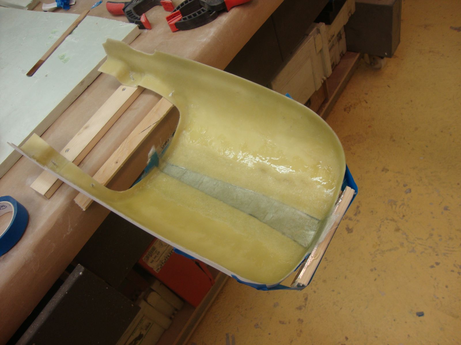 Then tailpiece on and lay out the fiberglass.