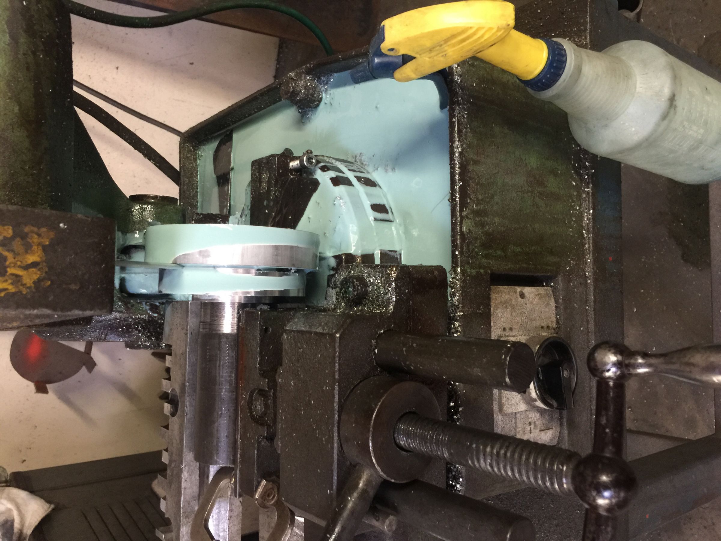 I had to rotate the slug a lot since I had to clamp it away from the blades ideal cutting line. Slow progress, but it was working beautifully.