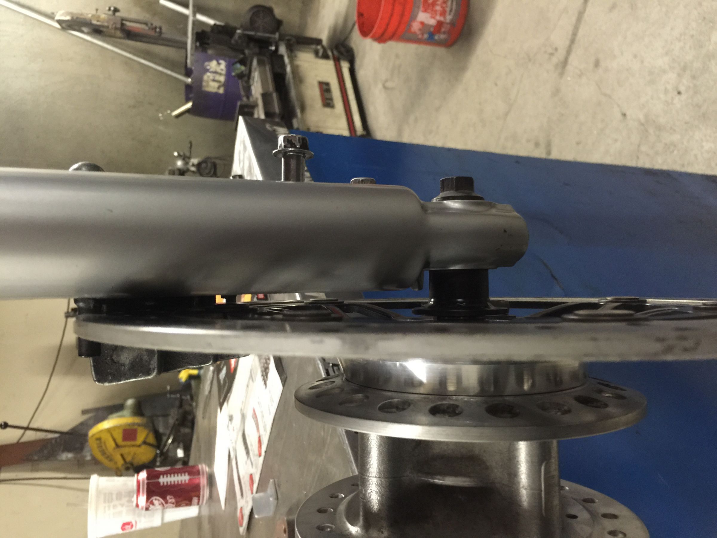 Back between the forks. I still need to drill out holes to bolt the spacer to the hub. Just got excited..
