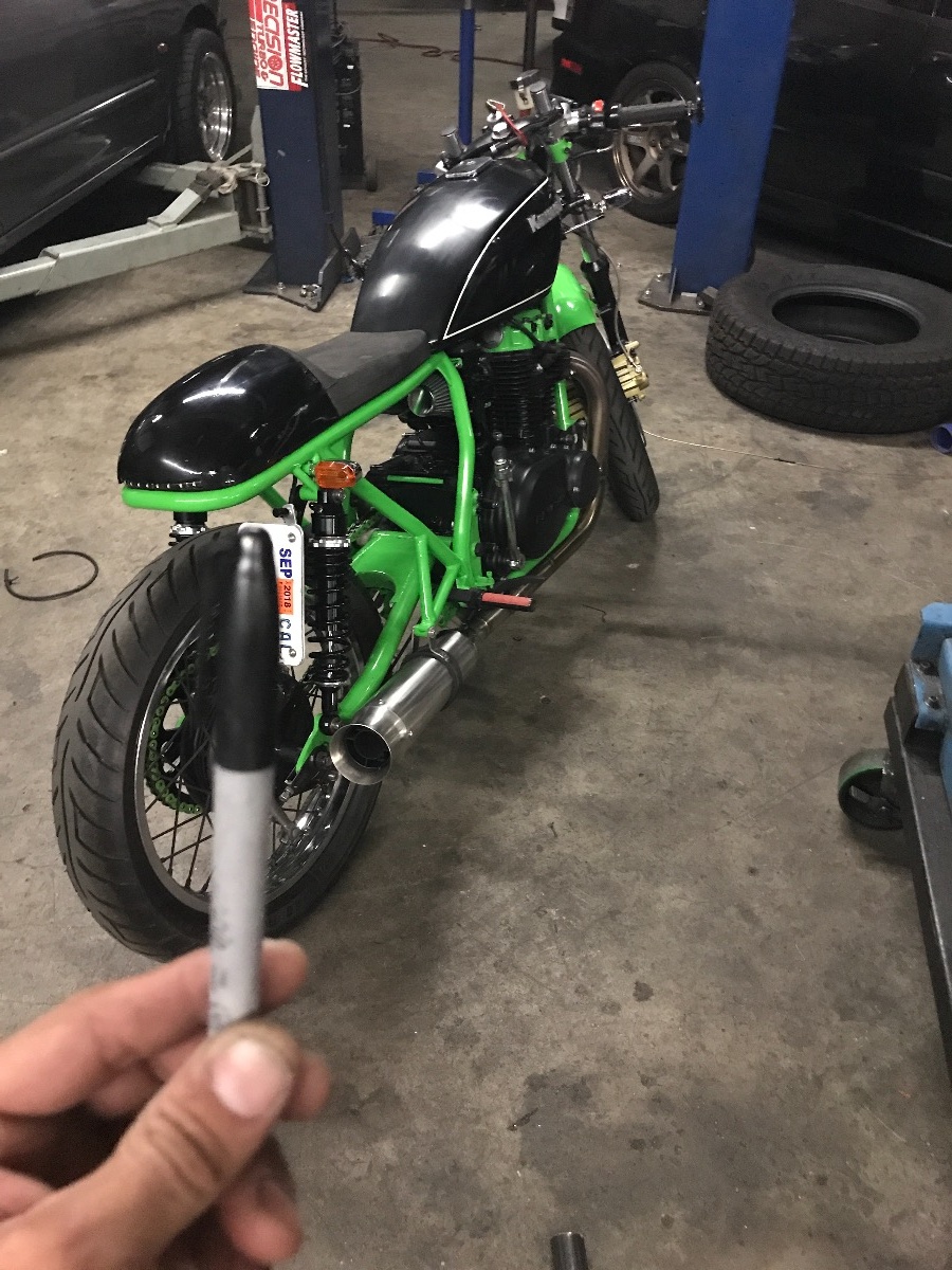 Hi forum!! Been awhile. Just thought I'd stop by and let everyone know that I wasn't dead and I'm still ride my KZ. Im glad that I havent had any major problems that couldn't be remedied in a matter of moments on the same day. Procrastination has taken over cause till this day I haven't modified my peg to even use the kick start? doh!! Just did a recent valve adjustment and I'm glad I machined some reliefs to get a feeler gauge in nicer. Was a it help on the exhaust side. Still have the Anti-grav 4cell in as well. I need to come up with a helmet hook or something that's low key, handles won't work cause of the bar end mirrors. Next sorta upgrade is gonna be maybe a wider rear tire. Got a RR 110/80 on now, and would like to get a harder comp on maybe a 120/70? I don't know, gonna have to sit (on the toilet) and do some searching some day