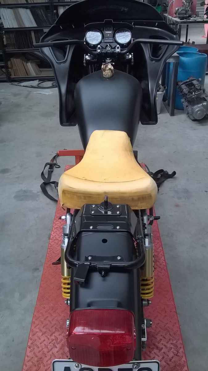 Finally got back to the seat. Had a mate help cut it down to the shape I wanted it.....................sat it on the bike and gave it a few tweeks and heyho off to get covered.