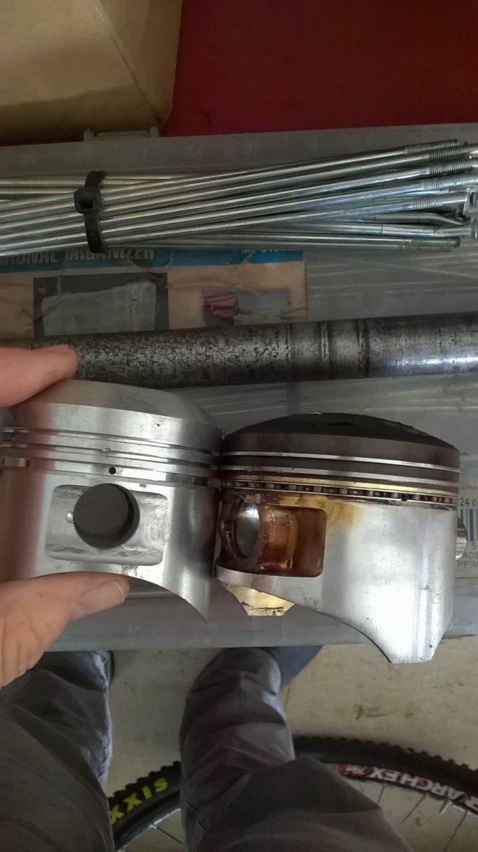 They are Moriaki pistons that were made for race kits. They are standard bore size so as to keep them under 1000cc for the race classes but with high comp. I am matching them up to GPZ1100 cams.