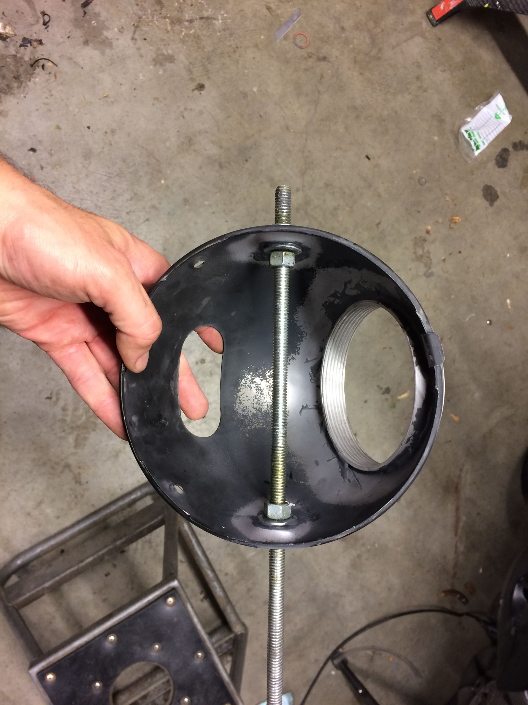 The mounts on the headlight bucket weren't parallel, and for some reason this bugged the crap out of me so I jb welded some washers in, and used some all-thread as a jig. I coated the all-thread and nuts in grease so I could go nuts (pun intended) with the jb weld and still remove the rod and nuts.