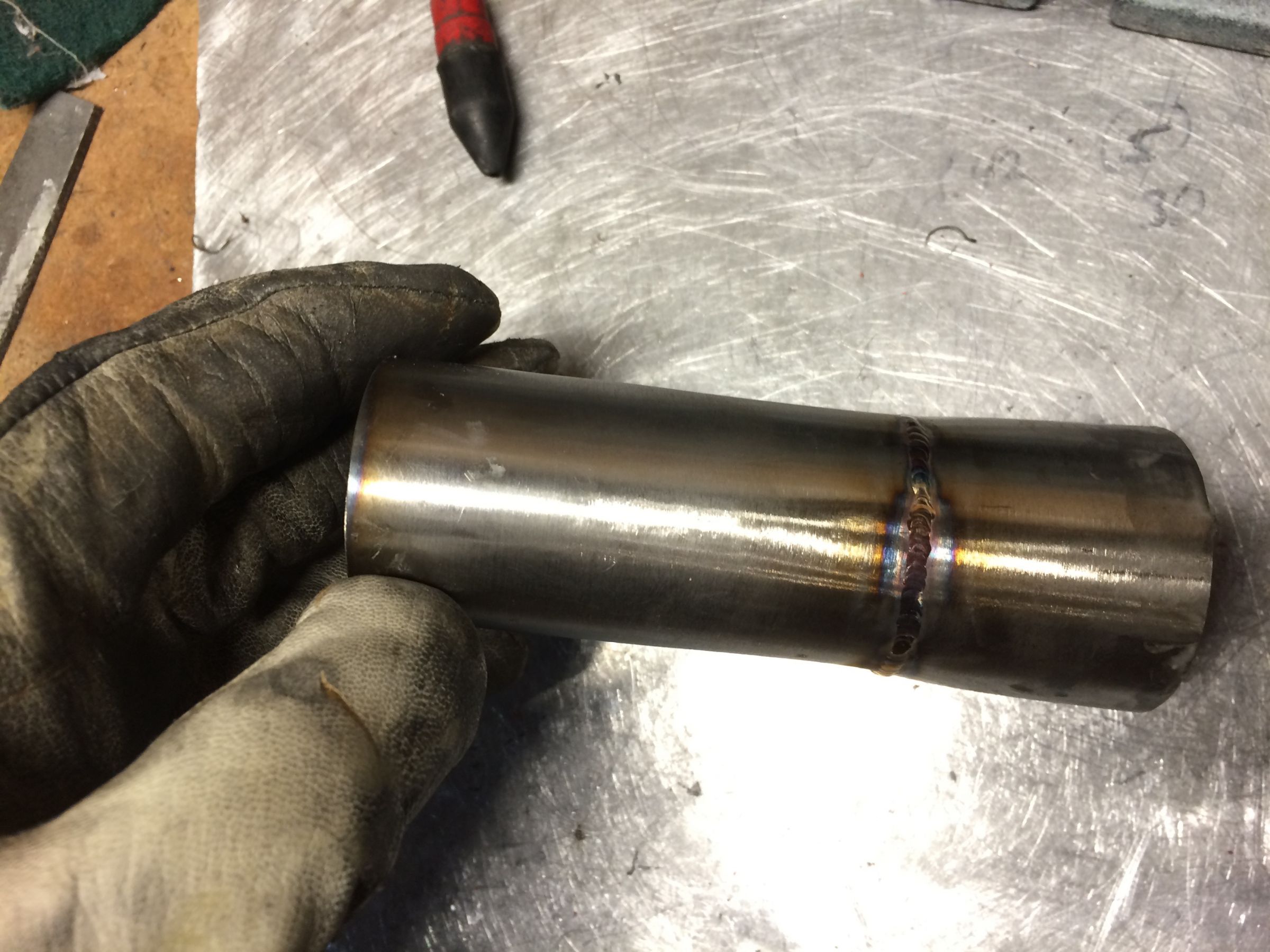I was using a Miller Syncro wave and found it hard to dial the machine and the tungsten/air combo in to weld aluminum. My Chinese inverter welder zaps aluminum so easily with bright shiny welds, I always wondered why people said aluminum was hard to weld until I used the syncro wave. It was a great learning experience though. Eric showed me a bunch of tricks or welding aluminum and feel much more confidant even though most of the welds arent very cosmetically appealing.