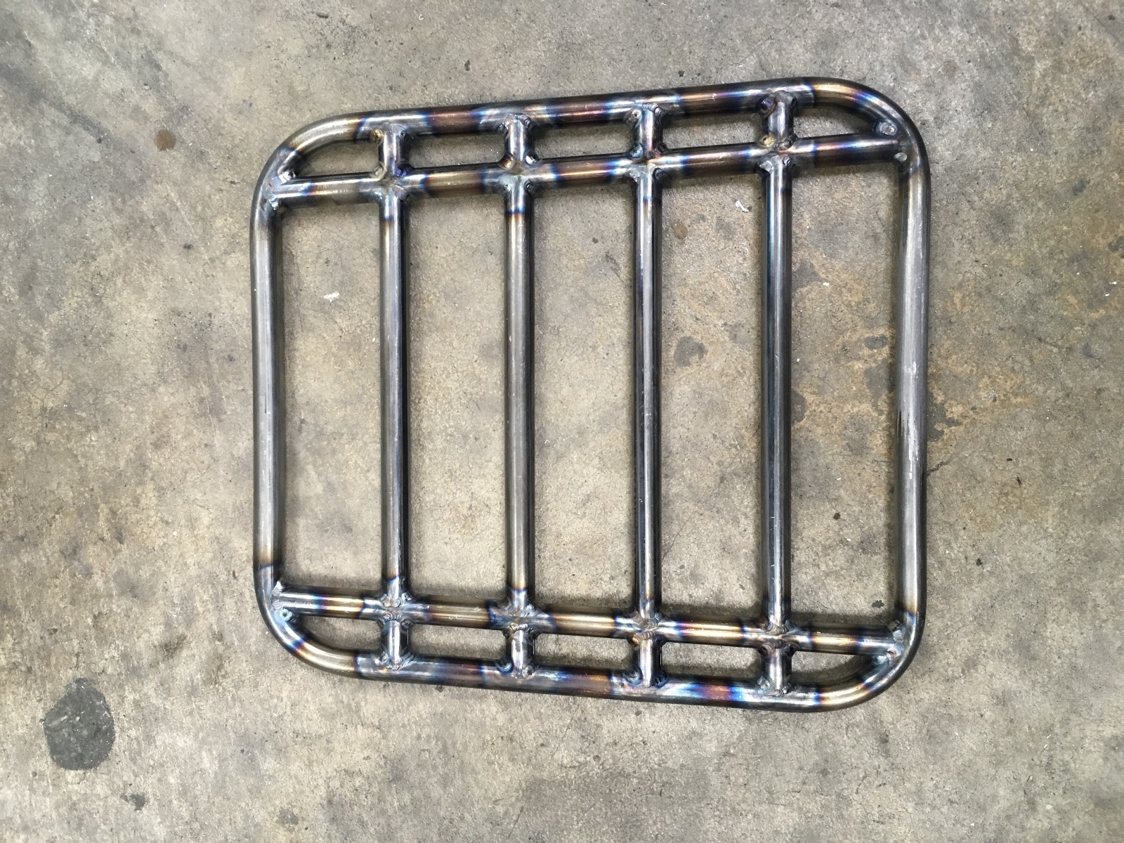 The rack is just regular mild steel, the crash guards and kickstand are chromoly. I'm going to polish the butt welds back on the crash-guards so they are seamless and then everything will get powder coated.