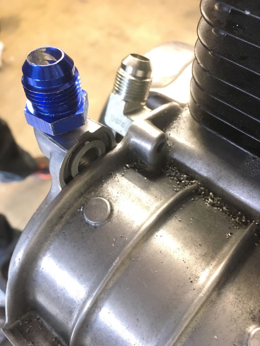 After two years of head scratching, I think this is the easiest way to adapt an oil cooler to this engine. Reclock the filter cover, and tap the cases for 1/4"npt