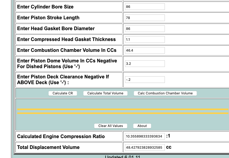 maintaining my desired squish (0.035") this should leave me at about 10.25 -10.35/1 static compression.