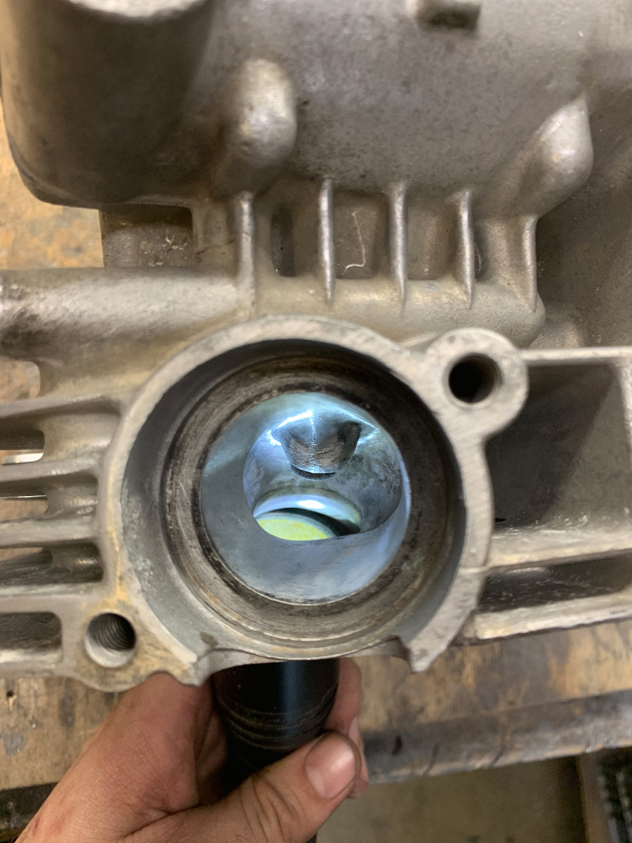I also took the time to polish the intake and exhaust runners and to blend in the valve seats. This is a common issue on these heads; the ports and valve seats are not aligned very well and leave a sharp internal edge. I'm no porting expert but I know that this is bad for flow. Other than that I mostly just removed the large casting flash present in the runners and tried not to remove much material as these ports are already too bg for stock displacement. I also took te time to port match the carb boots, and polish the combustion chambers.