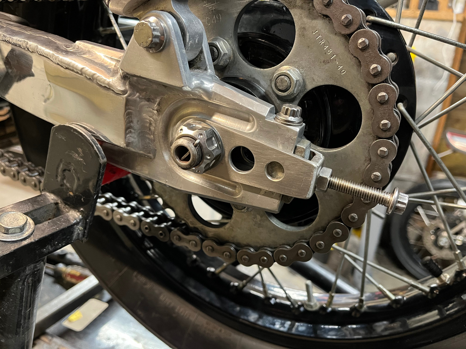 attempting to reign in my OCD... its not going well. I didn't like the black painted axle adjusters so I remade them in stainless.