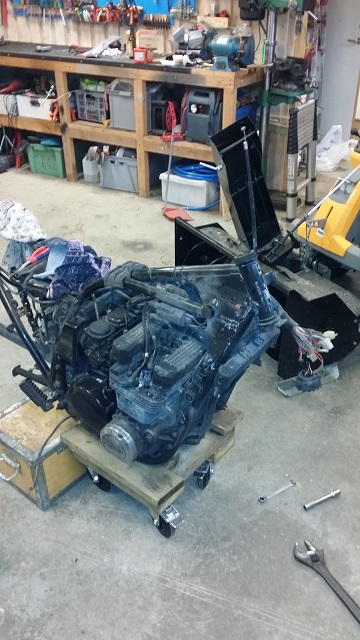 Well that's Ironic. It seems I'm the only one that has a 750R1 and doing mods that isn't replacing the forks and swing arm but isn't using the fairing, Not that I had the choice.