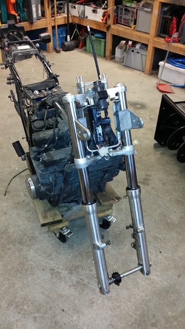 and the Zephyr 750 -93 (41mm) front end fits like a charm using the original GPz 750 bearings.