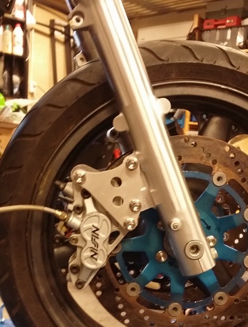 With only a little filing on one of the fork legs that brackets fitted like a charm and the caliper looks like they end up where they should go.