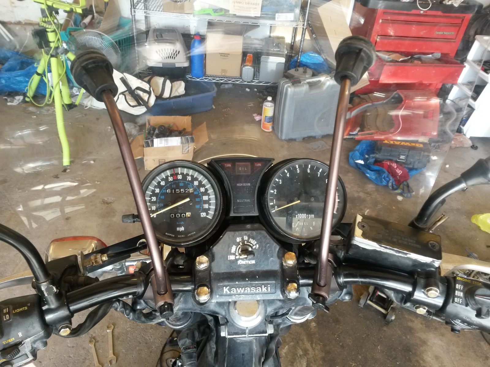 Going a bit slower than I wanted, I should have everything I need to have it running decent except for the obligatory odd part here and there. I still need to rebuild the carbs, The choke collar on #4 is busted and the plunger doesn't move freely so i gotta figure out what the issue is there. The valves were within spec so i didn't have to mess around there. Compression is a bit on the low side but consistent so I'm hoping with some regular running it will come up a bit. I put on the new intake boots, the old ones were loose and kind of mangled. I have to seat the airbox boots correctly. Finish retrofitting the KZP speedometer then figure out something for blinkers, the LR didn't match the others and the Chinese ones I ordered don't fit right. Then I have to mount the windshield i picked up from the local classifieds for $15 and we should be good to go.