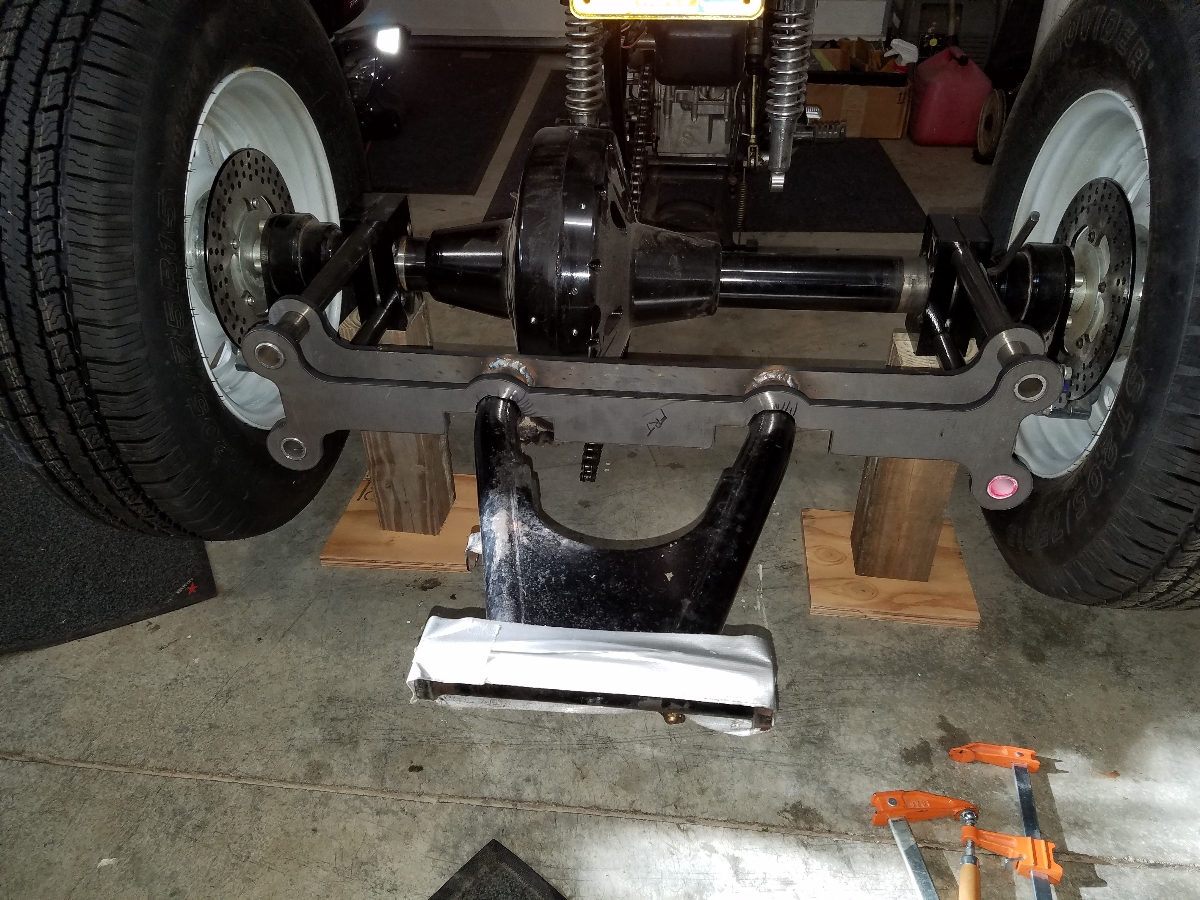 Here's a question: After the swing arm is all welded up. Does anybody see anything wrong with just welding two of the pinch blocks to the axle tubes?